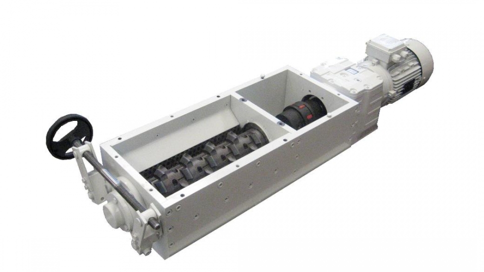A câmara de trituração é alimentada por um sem-fim (cóclea), no qual seu comprimento é personalizável com base na aplicação de trituração de limalha exigida pelo processo.